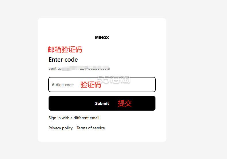 4. 如果邮箱没有注册,网站会自动进行注册。接下来去邮箱中获取验证码,输入到网站对话框中,点击“Submit”提交完成新邮箱注册。