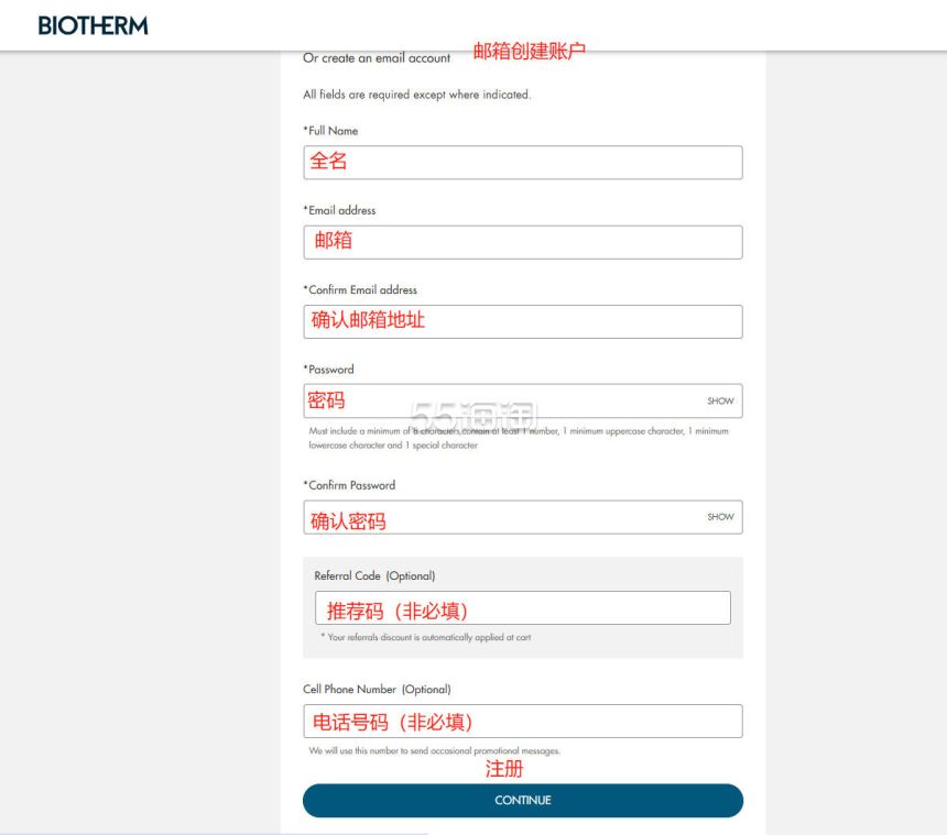 3. 现在来到创建账户的页面,根据提示填写账号信息,填写好之后点击“CREATE ACCOUNT”完成账号创建。