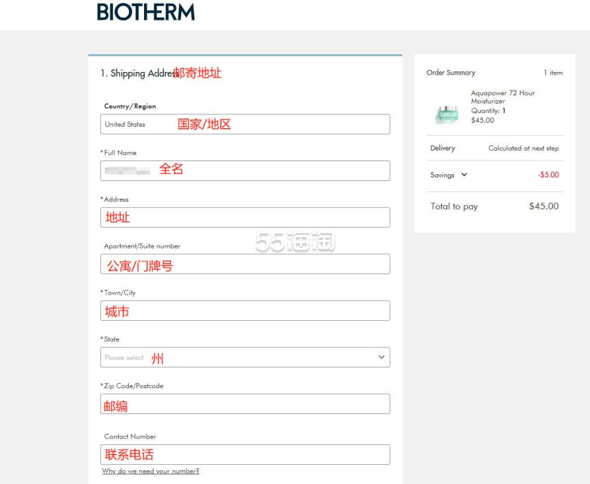 7. 首先来填写邮寄地址,网站不支持直邮中国,所以地址填写需要参考转运公司的地址。