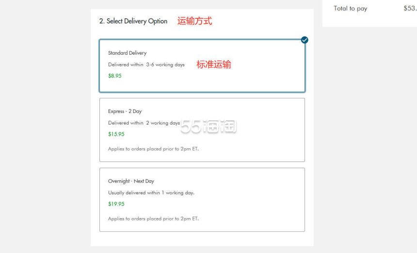 8. 接下来选择运输方式,一般选择标准运输方式。