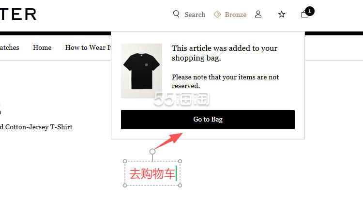 5. 成功加入购物车后会显示以下界面,可点击“Go to Bag”进入购物车结账。