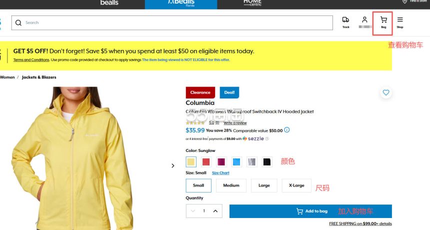 5. 账号注册好之后就可以开始购物啦,选择你想买的产品,进入到详情页,选择好尺码、颜色之后,点击“ADD TO CART”将产品加入购物车,点击右上角的购物车可查看。