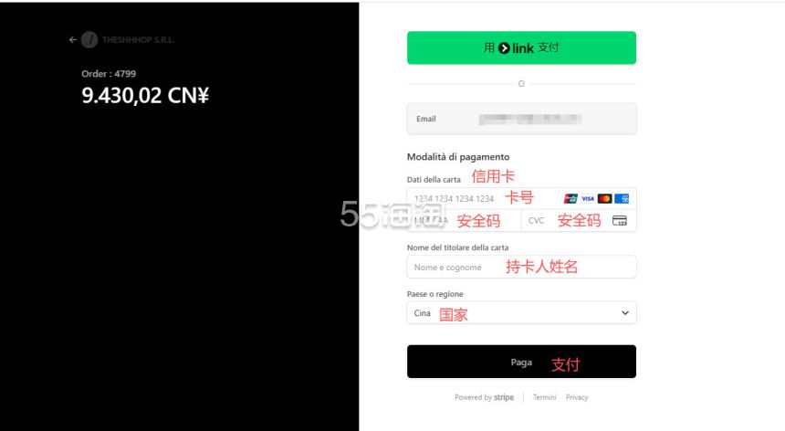 7. 最后选择支付方式,我们选择信用卡支付的话,根据提示填写好信用卡信息,最后点击“paga”提交订单完成支付后,订单就生成啦。