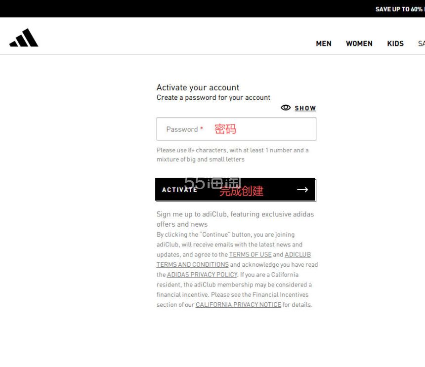 4. 现在来到密码设置的页面,填写好之后点击“ACTVATE”完成创建。