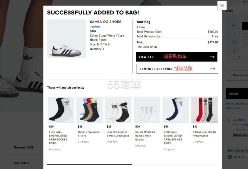 6. 成功加入购物车后会显示以下界面,可点击“VIEW BAG”进入购物车结账。