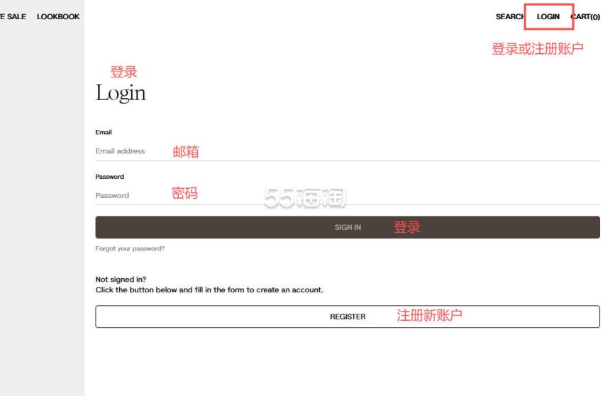 2. 进入官网后,点击右上角的“LOGN”登录或注册账户,有账号直接输入账号密码登录,没有账号点击“REGISTER”创建一个新账户。