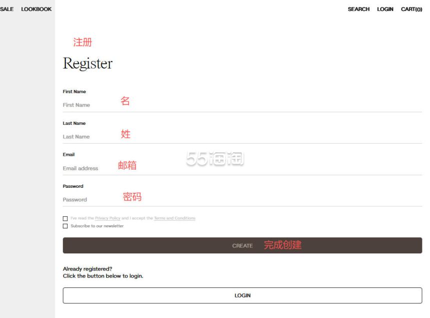 3. 现在来到创建账户的页面,根据提示填写账号信息,填写好之后点击“CREATE”完成账号创建。