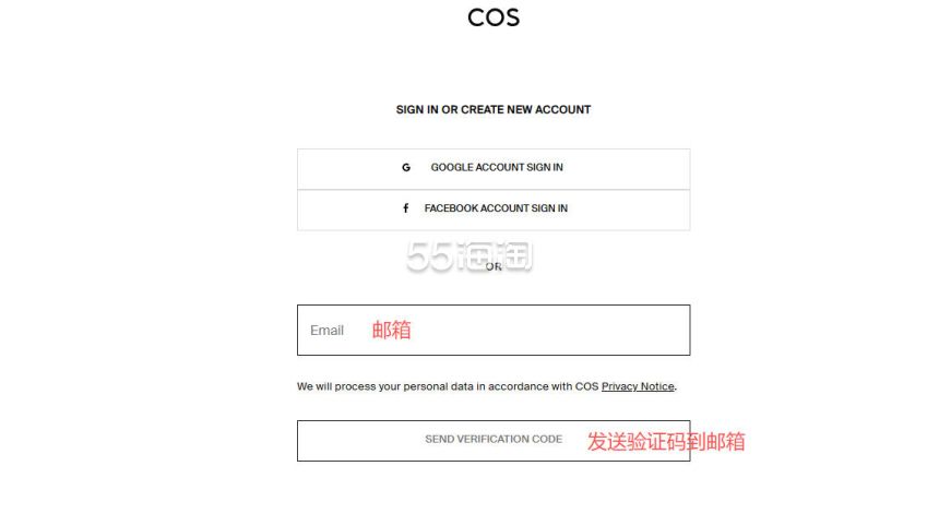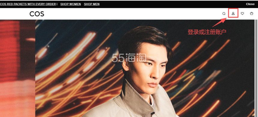 1. 注册并登录55海淘账号,不仅可以关注到国内外购物网站的优惠折扣,购物还能享受返利。本次教程以55海淘网页版为例。首先,在搜索栏搜索COS HK,点击“去购买拿返利”进入COS香港官网。
