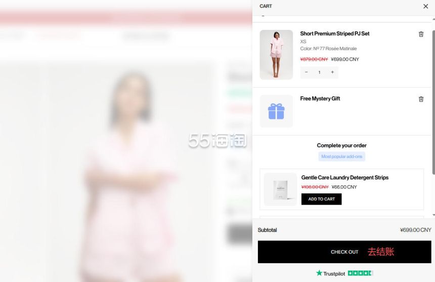 6.成功加入购物车后会显示以下界面,可点击“CHECK OUT”结账。