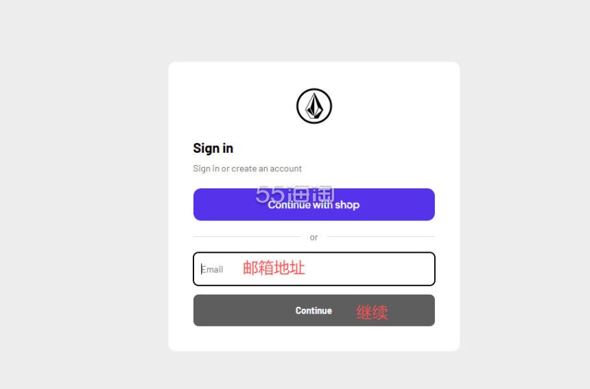 3. 现在来到登录创建账号页面,输入邮箱地址,点击“continue”继续。