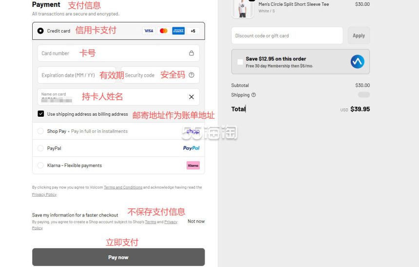 8. 最后填写支付信息,选择信用卡支付的话,根据提示填写好信用卡信息,记住不要保存支付信息的选项,有卡被盗刷的风险。账单地址可勾选和邮寄地址相同,最后点击“SAVE&REVIEW ORDER”提交订单完成支付后,订单就生成啦。