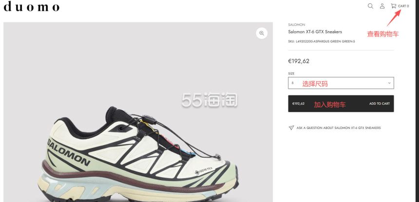 5. 账号注册好之后就可以开始购物啦,选择你想买的产品,进入到详情页,选择好之后,点击“ADD TO CART”将产品加入购物车,右上角购物袋可查看购物车内容。