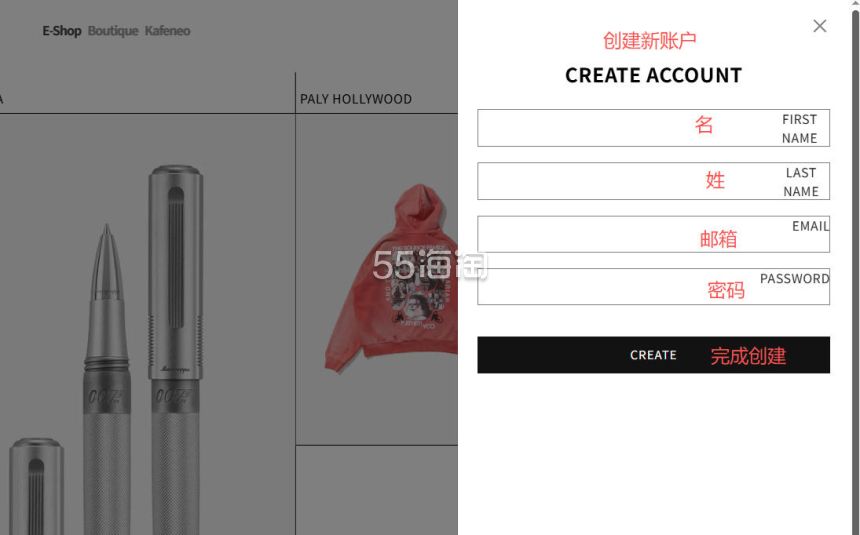 4. 现在来到创建账户的页面,根据提示填写账号信息,填写好之后点击“CREATE ”完成账号创建。