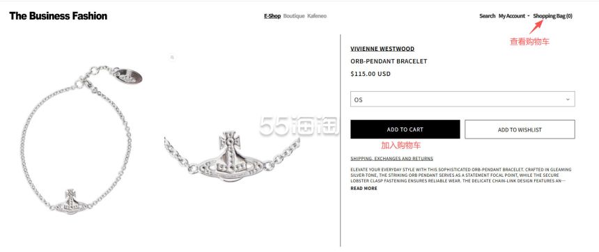 5. 账号注册好之后就可以开始购物啦,选择你想买的产品,进入到详情页,选择好之后,点击“ADD TO CART”将产品加入购物,右上角的购物袋可查看购物车。