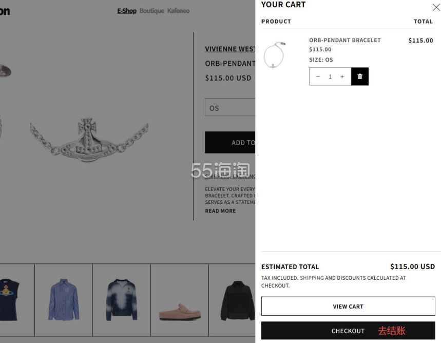 6. 成功加入购物车后会显示以下界面,可点击“CHECKOUT”进入结账流程。