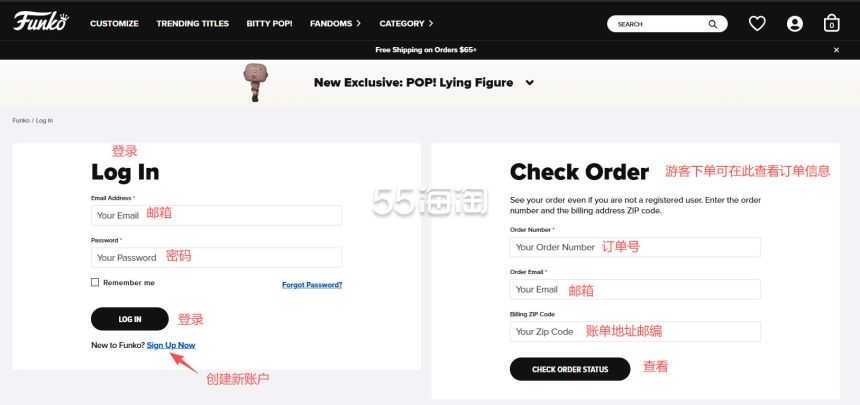 3. 现在来到登录页面,有账号就直接输入账号密码登录,没有账号点击“Sign Up Now”创建一个新的账户,游客下单的可以在这里输入信息查询订单详情。