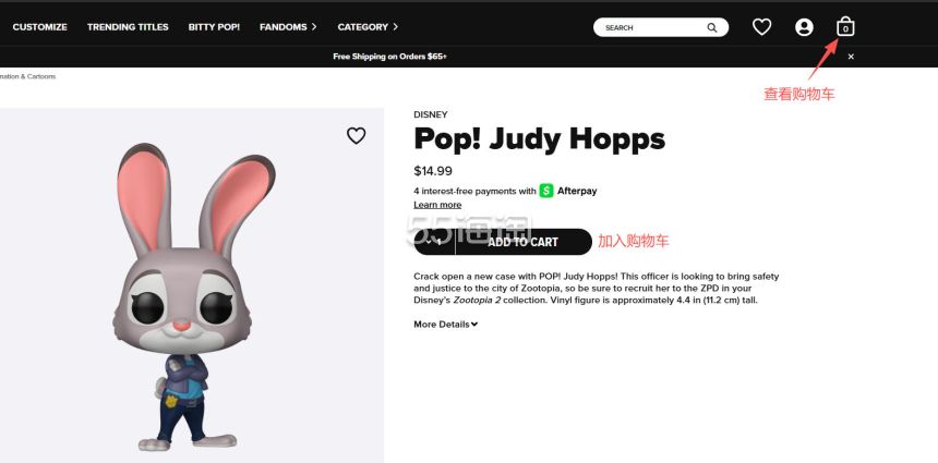 5. 账号注册好之后就可以开始购物啦,选择你想买的产品,进入到详情页,点击“ADD TO CART”将产品加入购物车,也可点击页面右上角的购物袋查看购物车。