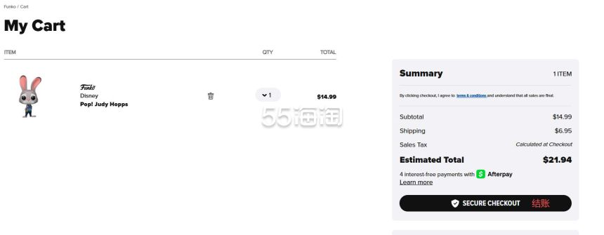 7. 确认好购物车的商品就可以去结账啦,点击“SECURE CHECKOUT”进入结账流程.