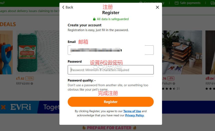 3. 现在来到登录创建账号页面,输入邮箱地址,如果是未注册过的邮箱,会弹出密码设置,设置好密码后点击“Register”继续,
