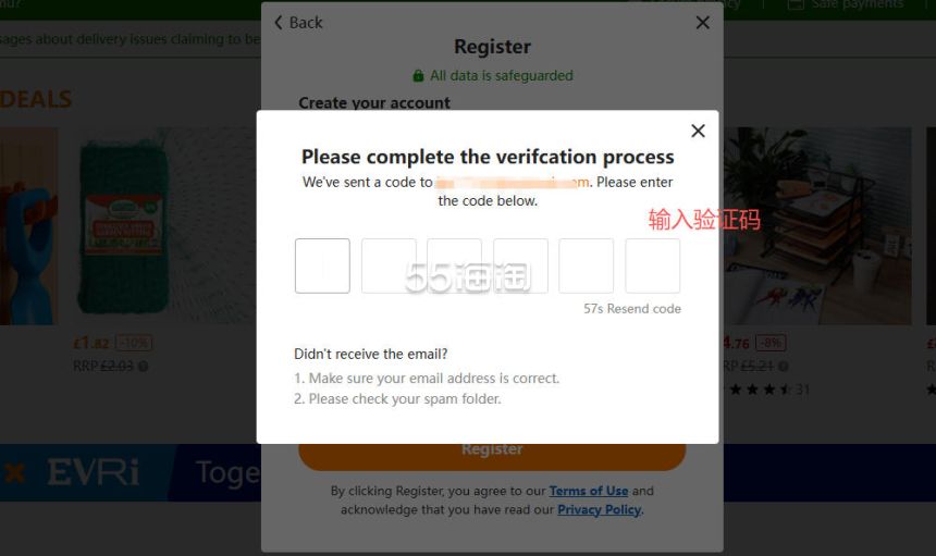 4. 接下来到邮箱中接收验证码,并填入到网站注册页面,即可完成注册。