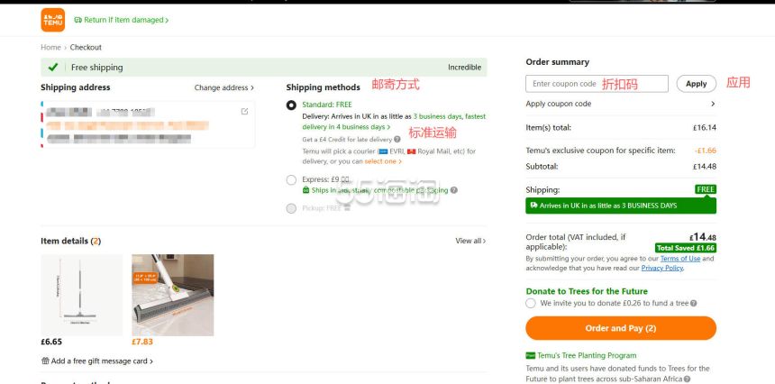 8. 有折扣码可以添加折扣码使用,邮寄方式选择免费的标准方式邮寄。