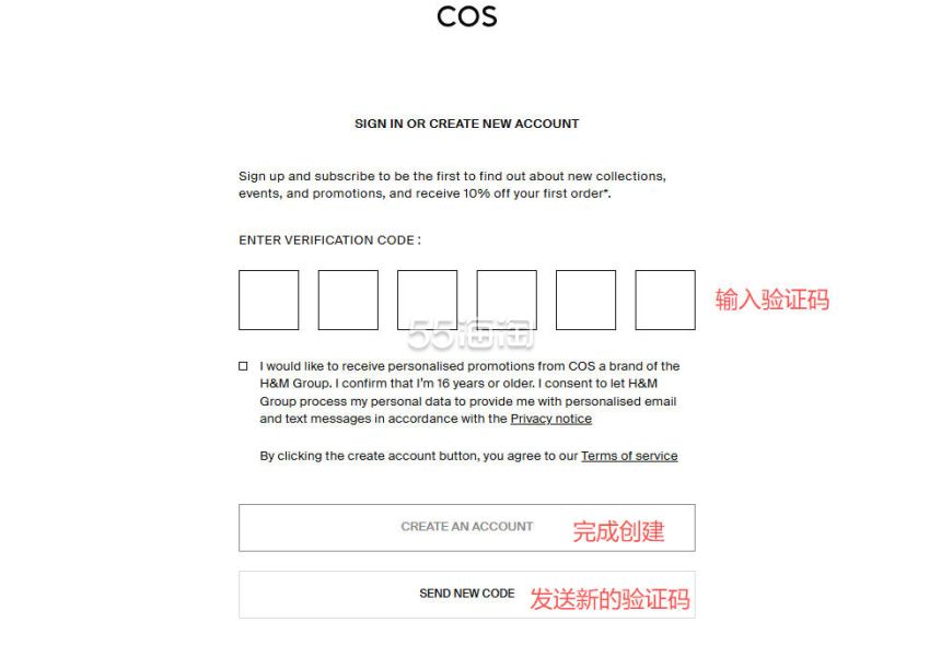 4. 接下来到邮箱中接收验证码,并填入到网站注册页面,点击“CREATE AN ACCOUNT”提交完成注册。